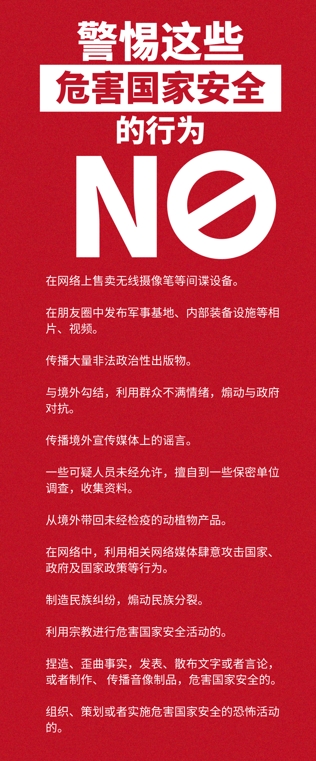 国家安全关乎每个人的切实利益,与我们每个人的工作、生活息息相关。在涉及国家安全的问题上,大家一定要谨而慎之。