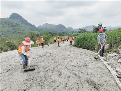 在木陇街道大蚌村五组,工人们正在对1号机耕道进行混凝土浇筑,机耕道建设快速推进。