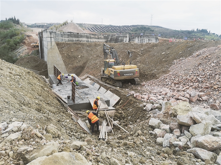 在施工现场,挖掘机、摊铺机、压路机等大型机械紧张作业,正在进行主路基路面垫层等施工,一派热火朝天的景象。据介绍,该项目计划今年12月30日前完成5.5公里的路面级配碎石铺筑、水泥稳定碎石铺筑,预计2024年6月全部建成通车。