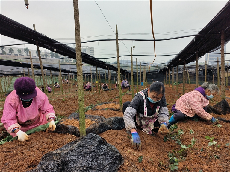 去年,义龙新区万屯镇盘新村因地制宜引进种植大户,通过流转土地的方式种植了300亩中药材三七,带动了附近村民就业增收,助力乡村振兴。