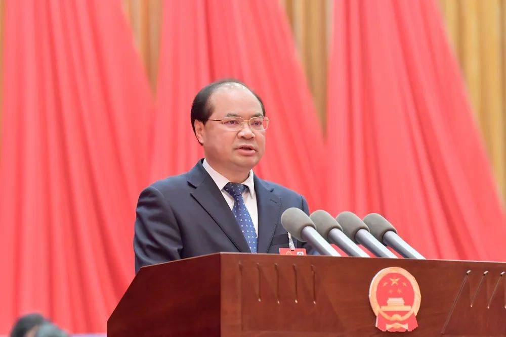 在热烈的掌声中,黄兴文代表州人民政府向大会作《政府工作报告》。报告分为三个部分:2022年工作回顾、2023年主要目标和重点任务、全面强化政府自身建设。