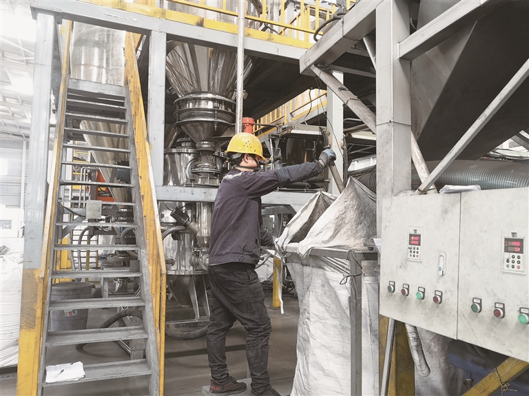 “公司现在的生产线都是全行业最先进的生产线,自动化程度是最高的,也是最环保的,原材料来自比亚迪、宁德时代这些行业的同步企业,做出来的产品也是销售在同步行业内。”艾戊云说,公司将深入挖掘产业发展潜力,狠抓产业集群建链、强链、延链、补链,一边忙生产,一边全力推进在建项目的建设进度,助推全市、全区构建链条完整的新能源新材料产业体系。图为公司生产车间一角。王洋翠 韦荣 摄影报道